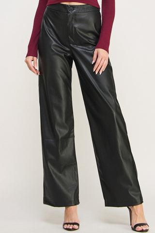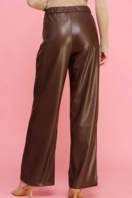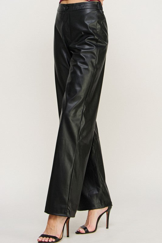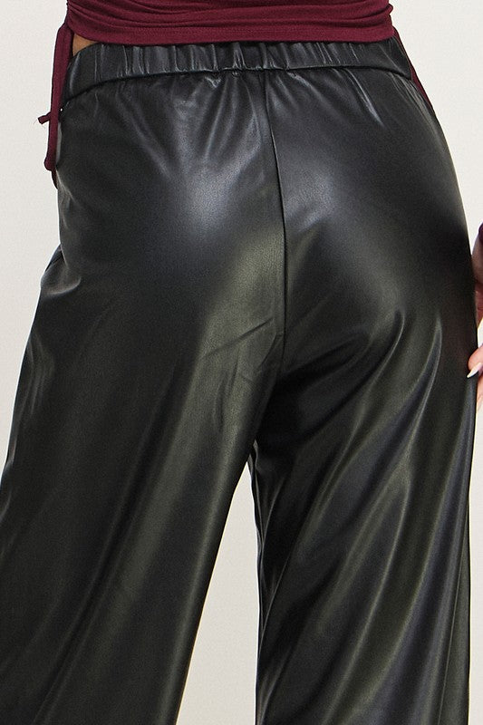 Pu Leather Wide Leg Pants Trouser
