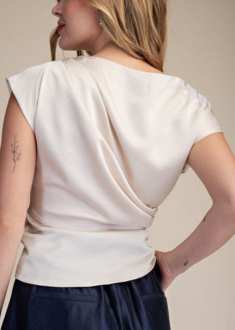 Boat Neck Waist Tie Blouse