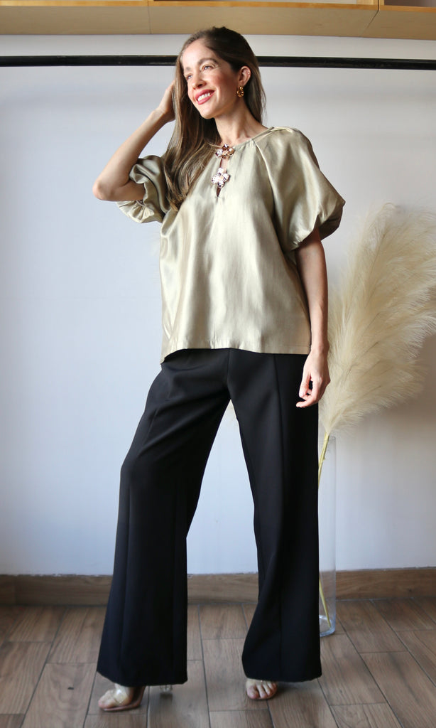 Round Neck Short Bubble Hem Sleeve Top