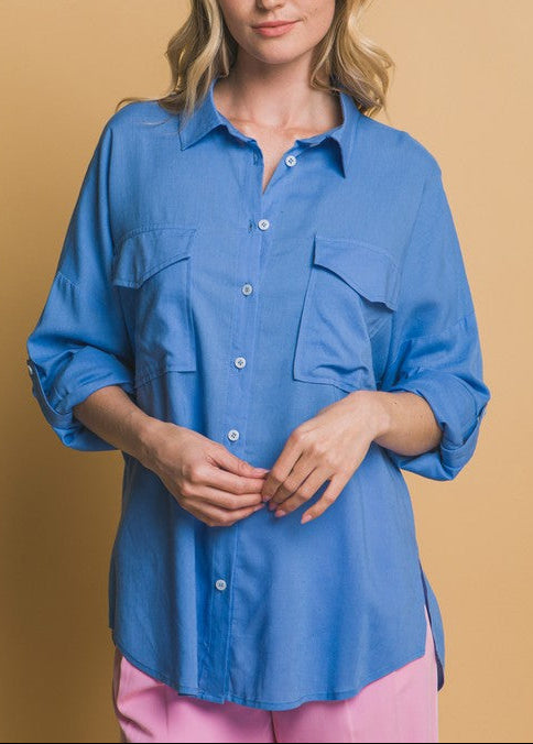 Long-sleeve Button-up Linen Shirt