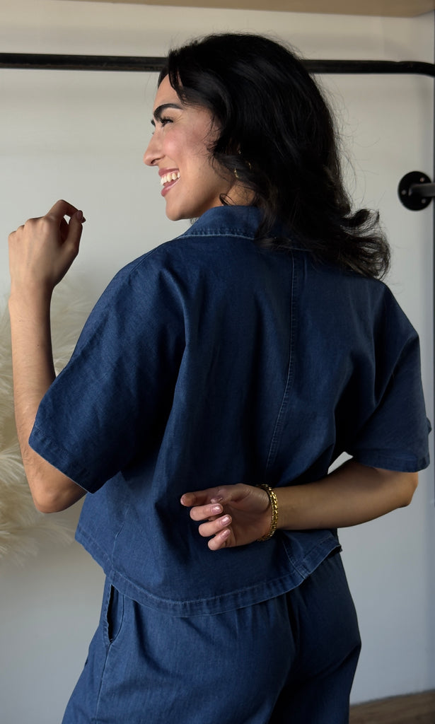 Denim V Neck Blouse