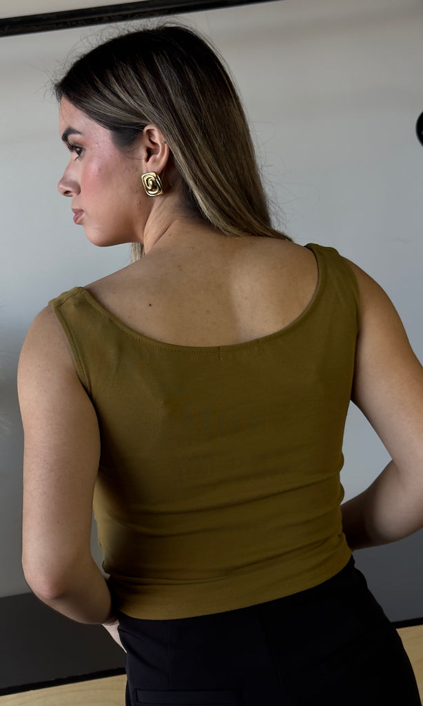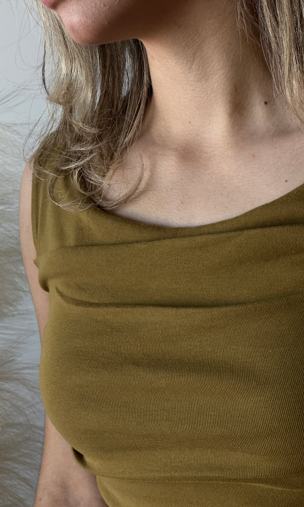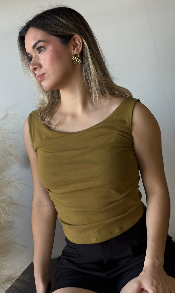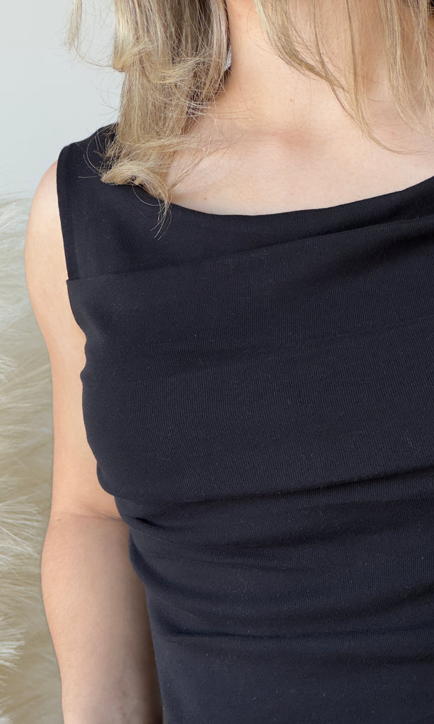 Sleeveless Wide Boat Neck Draped Top