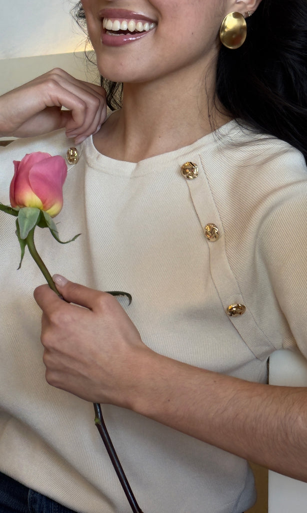 Gold Button Light Sweater