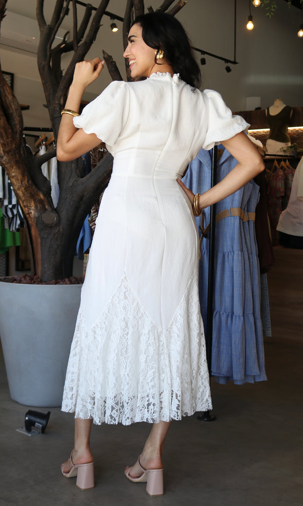 Short Sleeve Lace Midi Dress