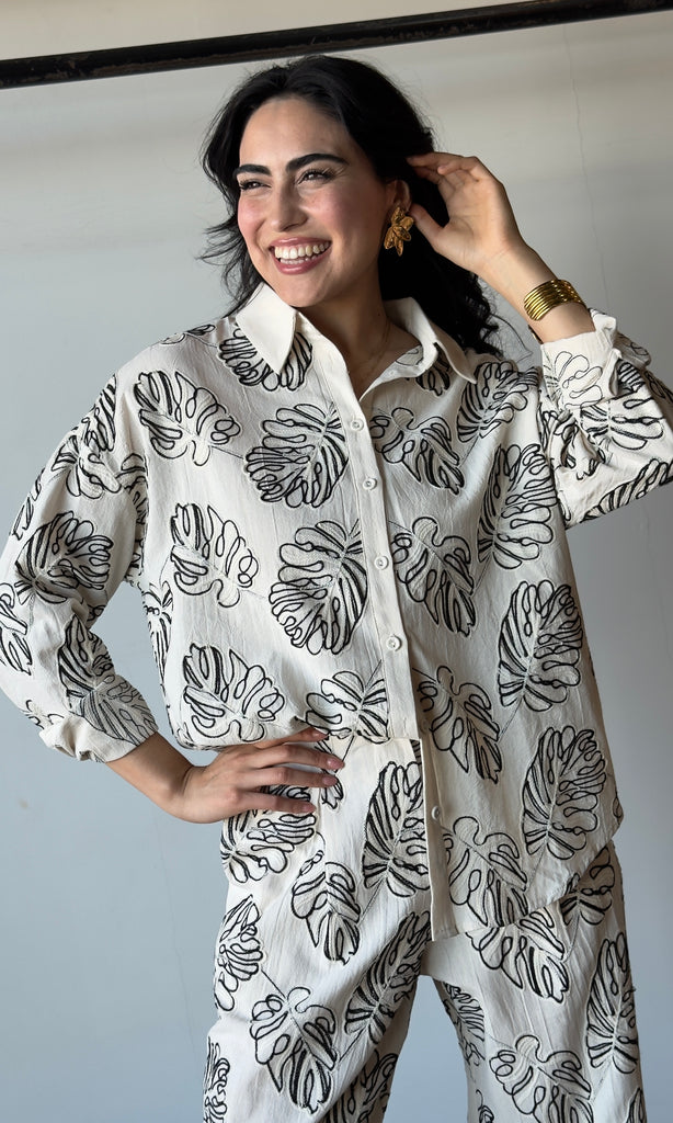 Embroidered Leaf Top