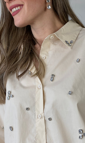 Taupe Button Rhinestone Blouse