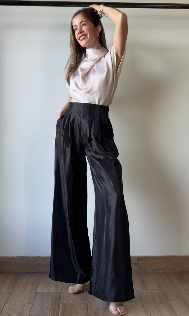 Pleated High-waisted Wide Pants