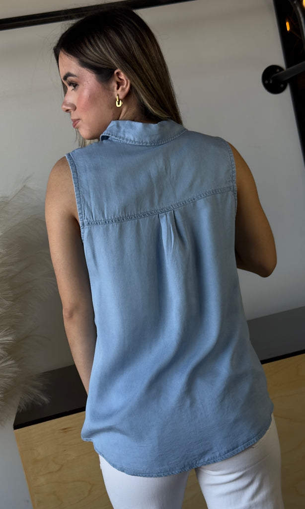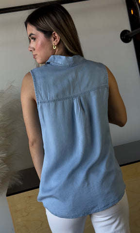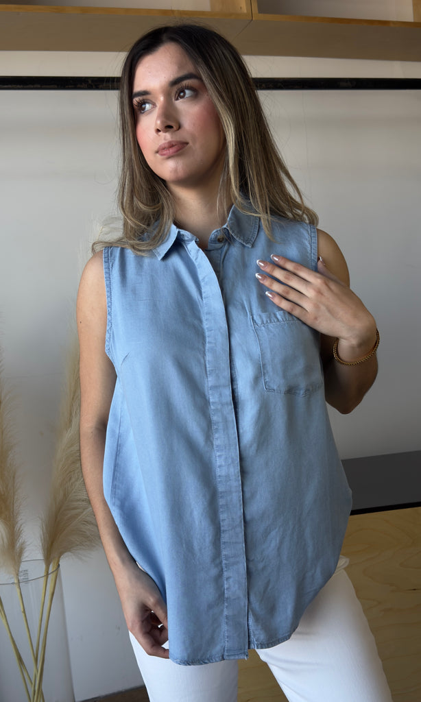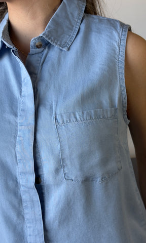 Sleeveless With Pocket Tencel Shirt